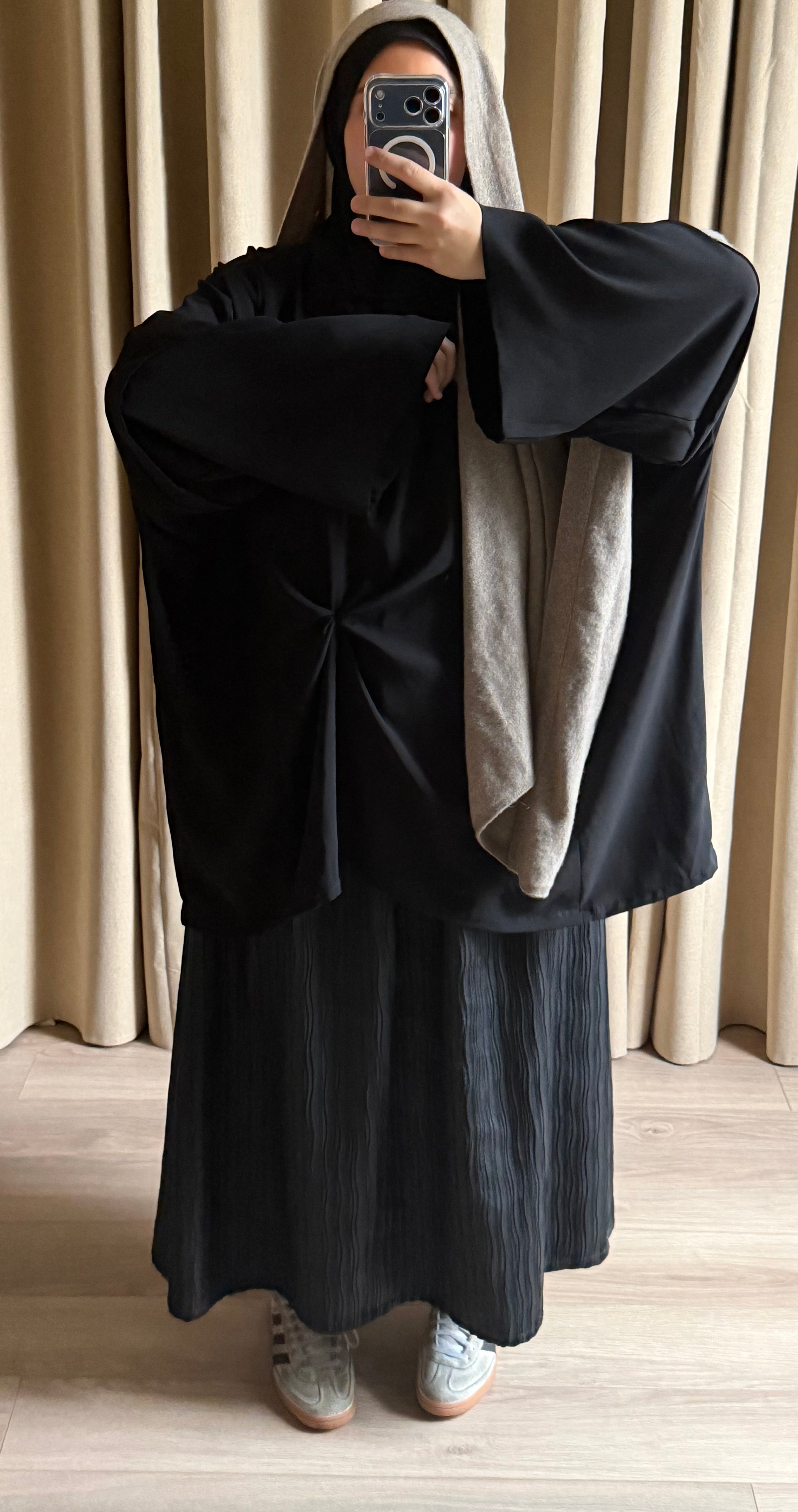 Oui, nous essayons de suivre les saisons concernant le choix des tissus. Pour cela, en été nous choisirons des tissus plus léger et fluide tandis qu’en hiver des tissus un peu plus épais. Tout cela afin de faciliter un maximum le port de nos abayas et d’éviter la superposition de plusieurs couches de vêtements.