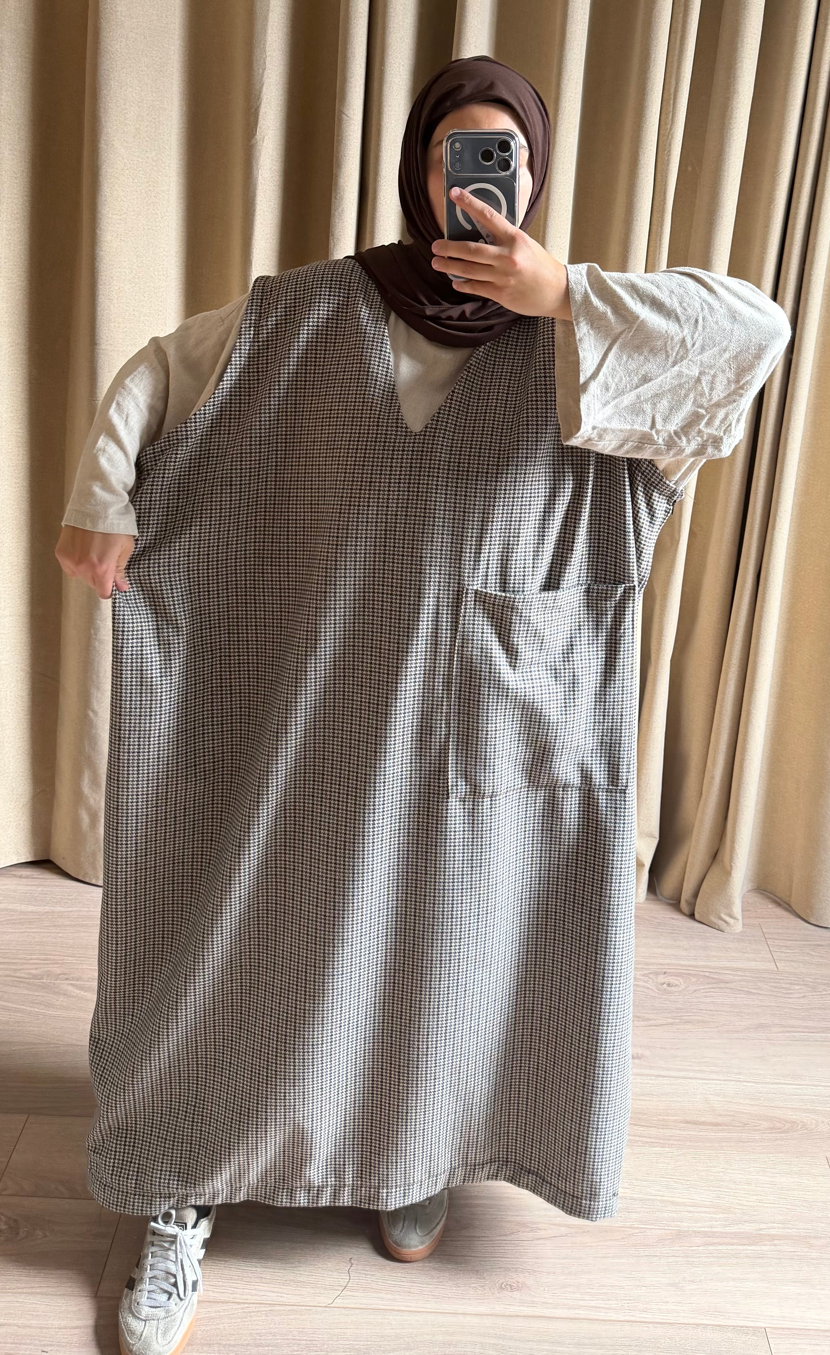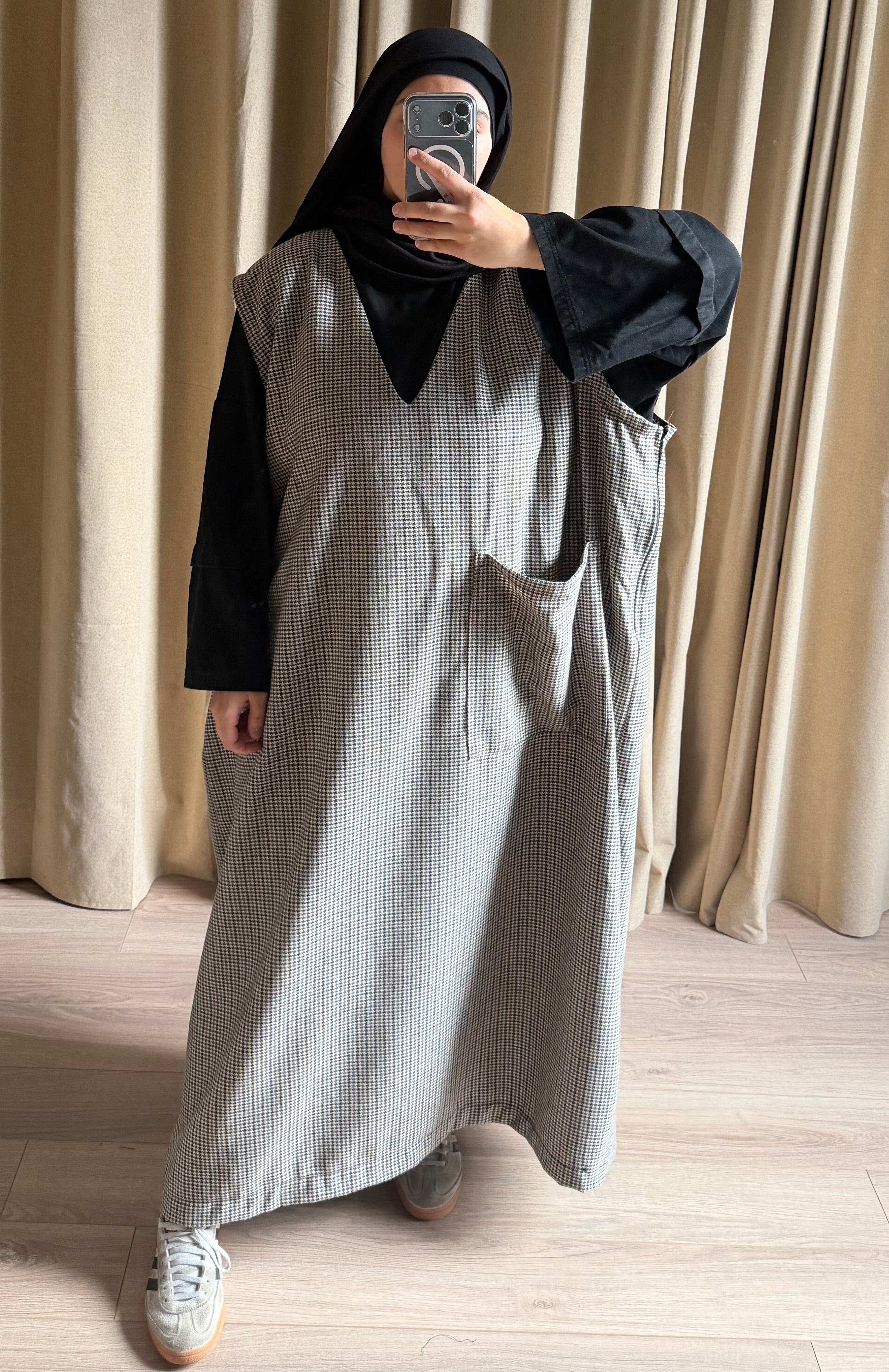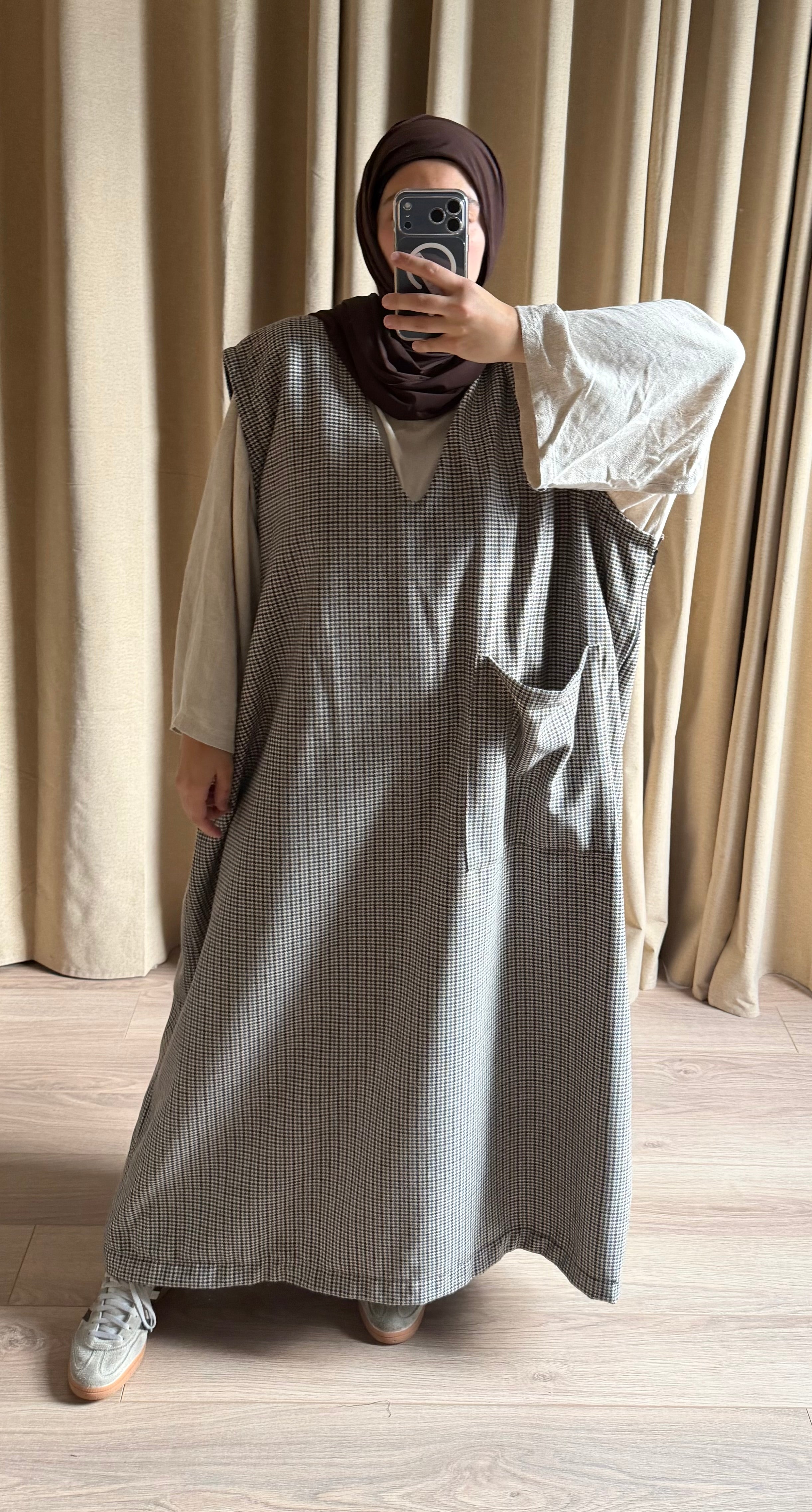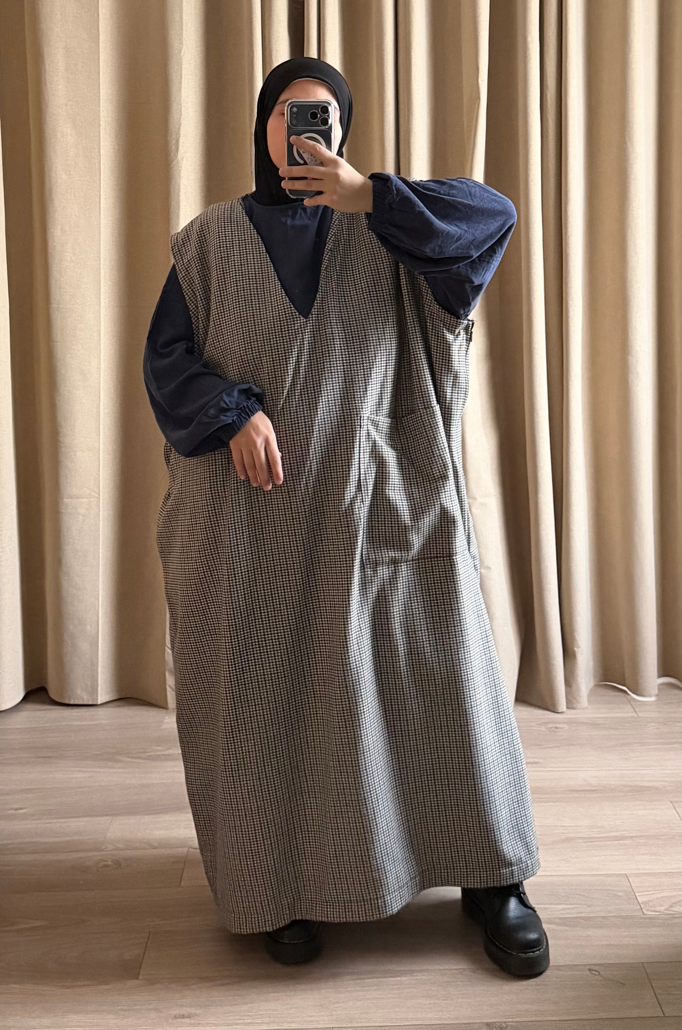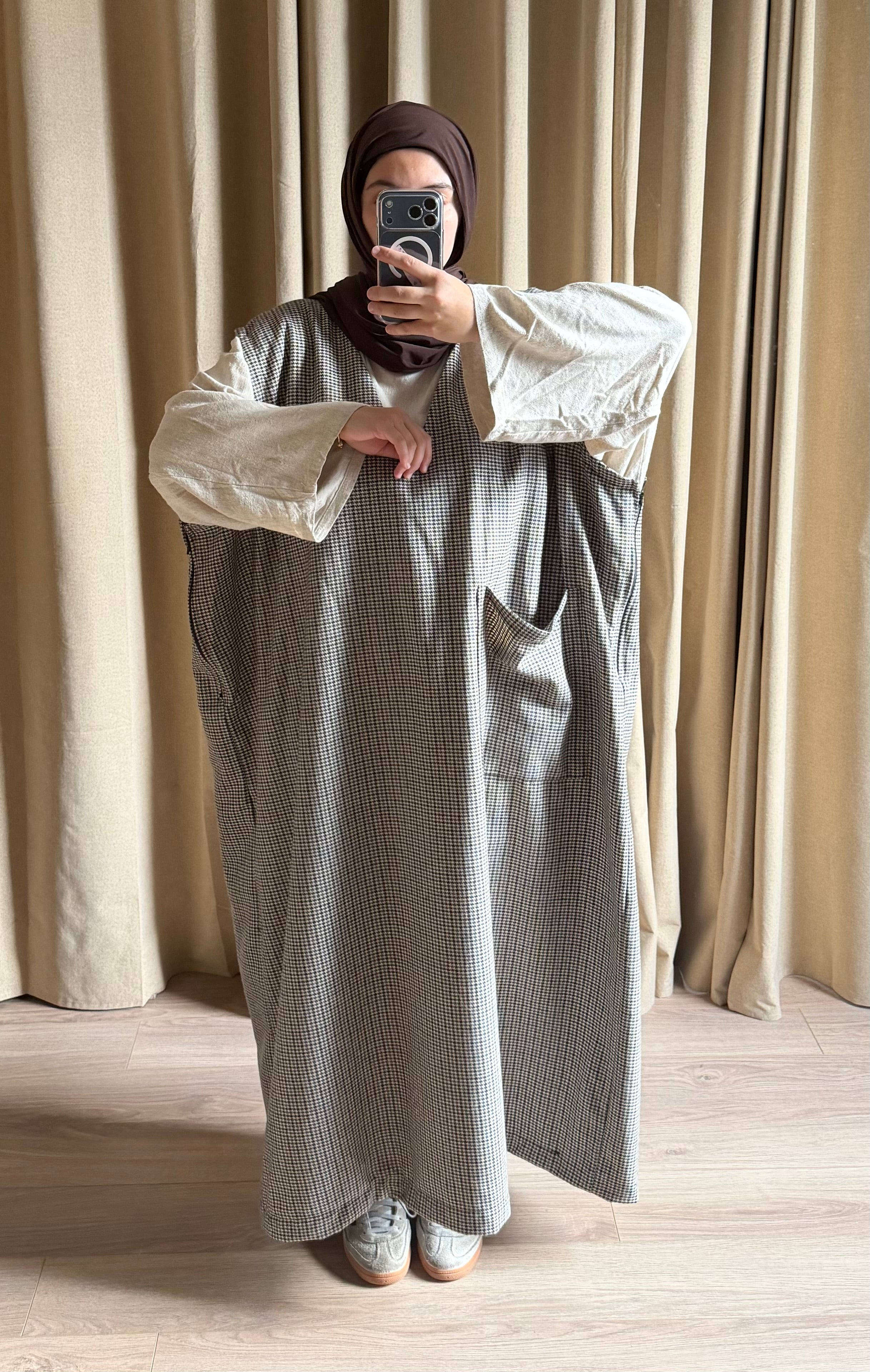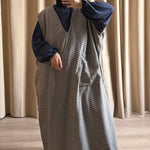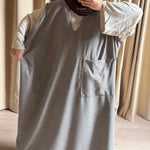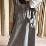 Parfaitement adaptée aux mamans allaitantes, cette robe chasuble en laine se porte sans contrainte avec vos vêtements d’allaitement habituels, pour un style libre et confortable.