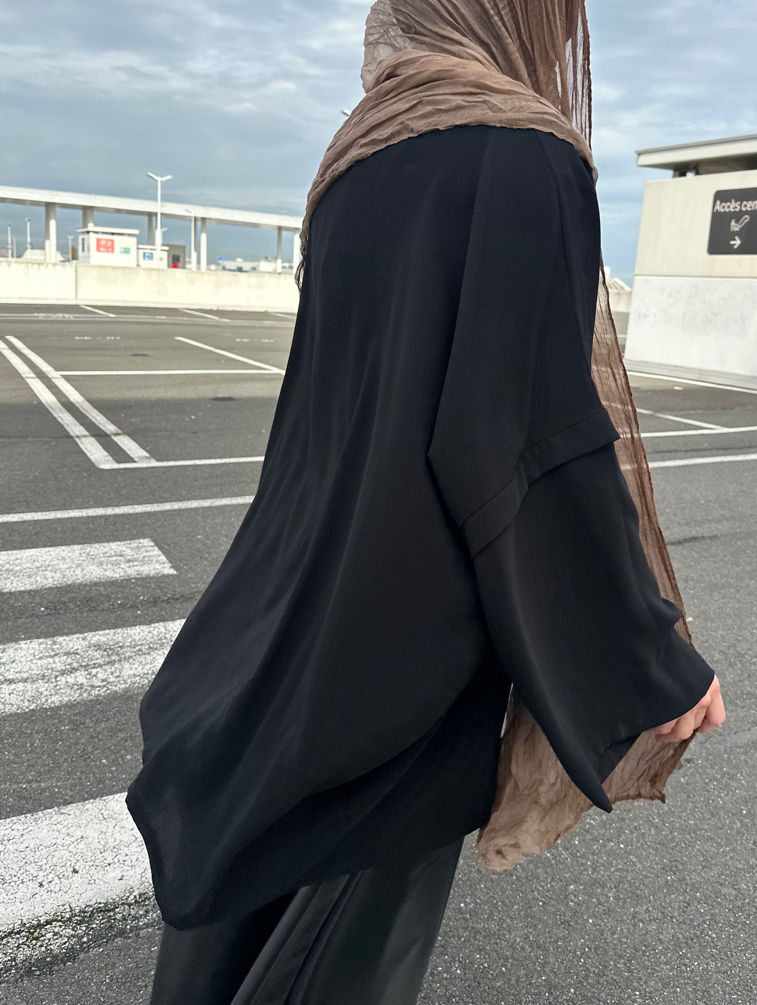 Oui, nous essayons de suivre les saisons concernant le choix des tissus. Pour cela, en été nous choisirons des tissus plus léger et fluide tandis qu’en hiver des tissus un peu plus épais. Tout cela afin de faciliter un maximum le port de nos abayas et d’éviter la superposition de plusieurs couches de vêtements.