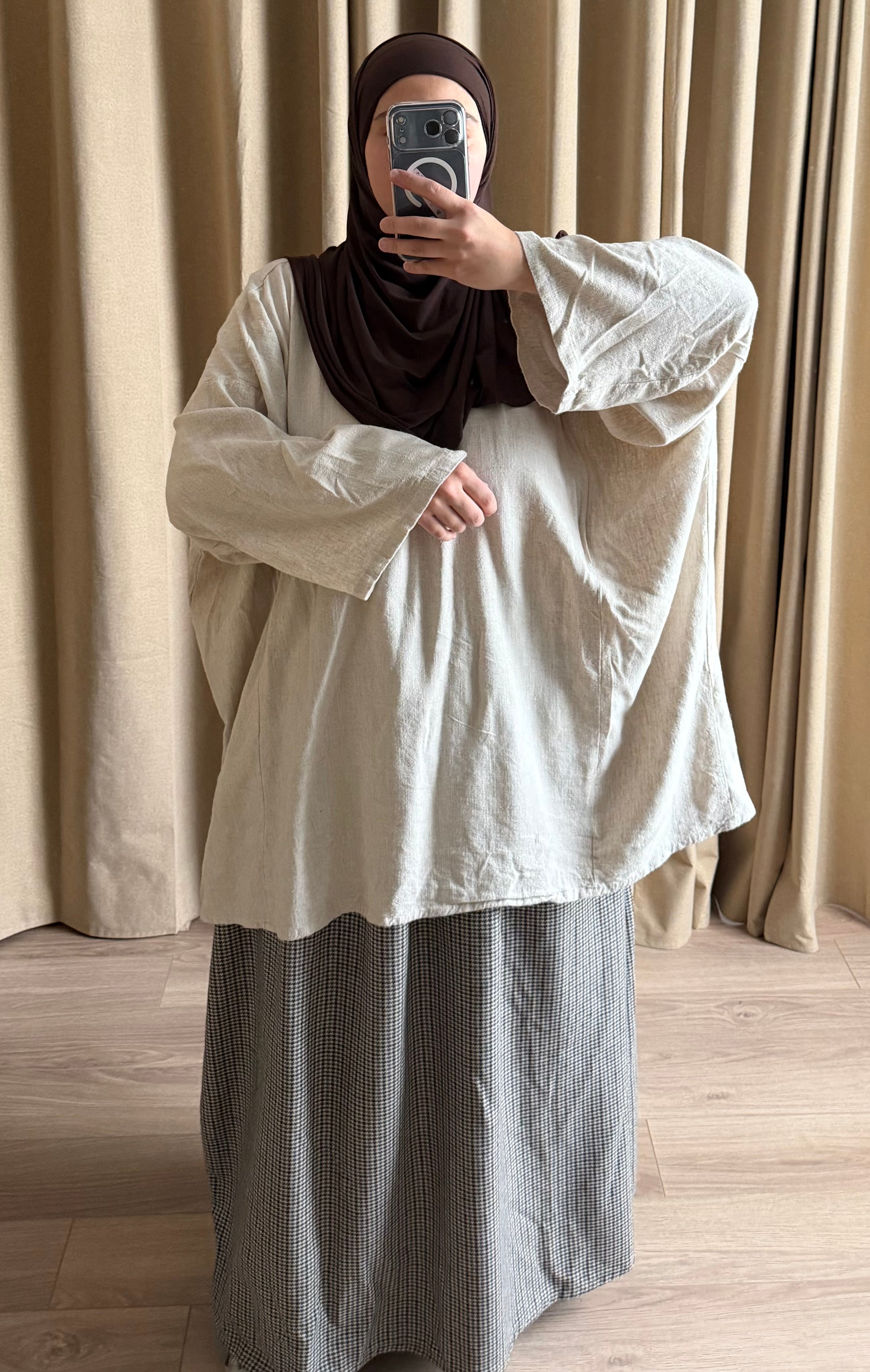Essentielle et intemporelle, la tunique Linen beige est une pièce pensée pour le confort et la simplicité. Sa coupe oversize offre une allure fluide et naturelle, idéale pour un porté quotidien, sans contrainte.